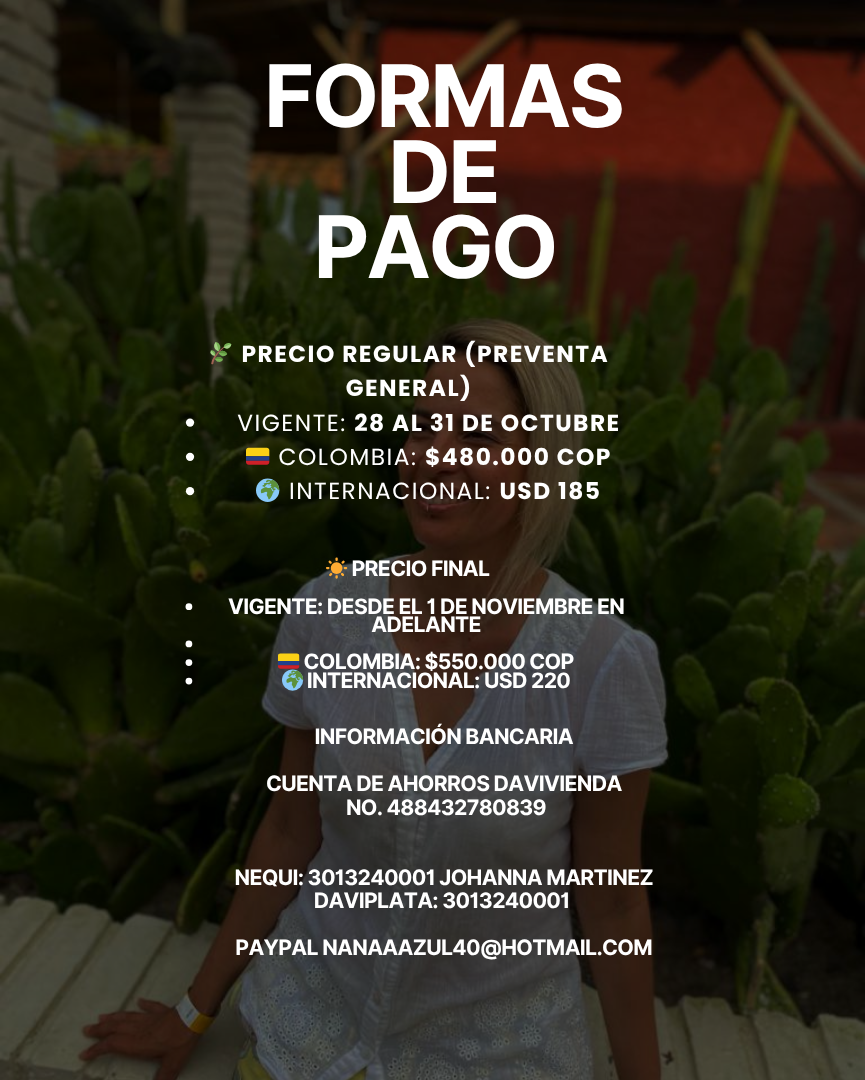 💫 Precio regular (del 27 al 31 de octubre): $450.000 COP
